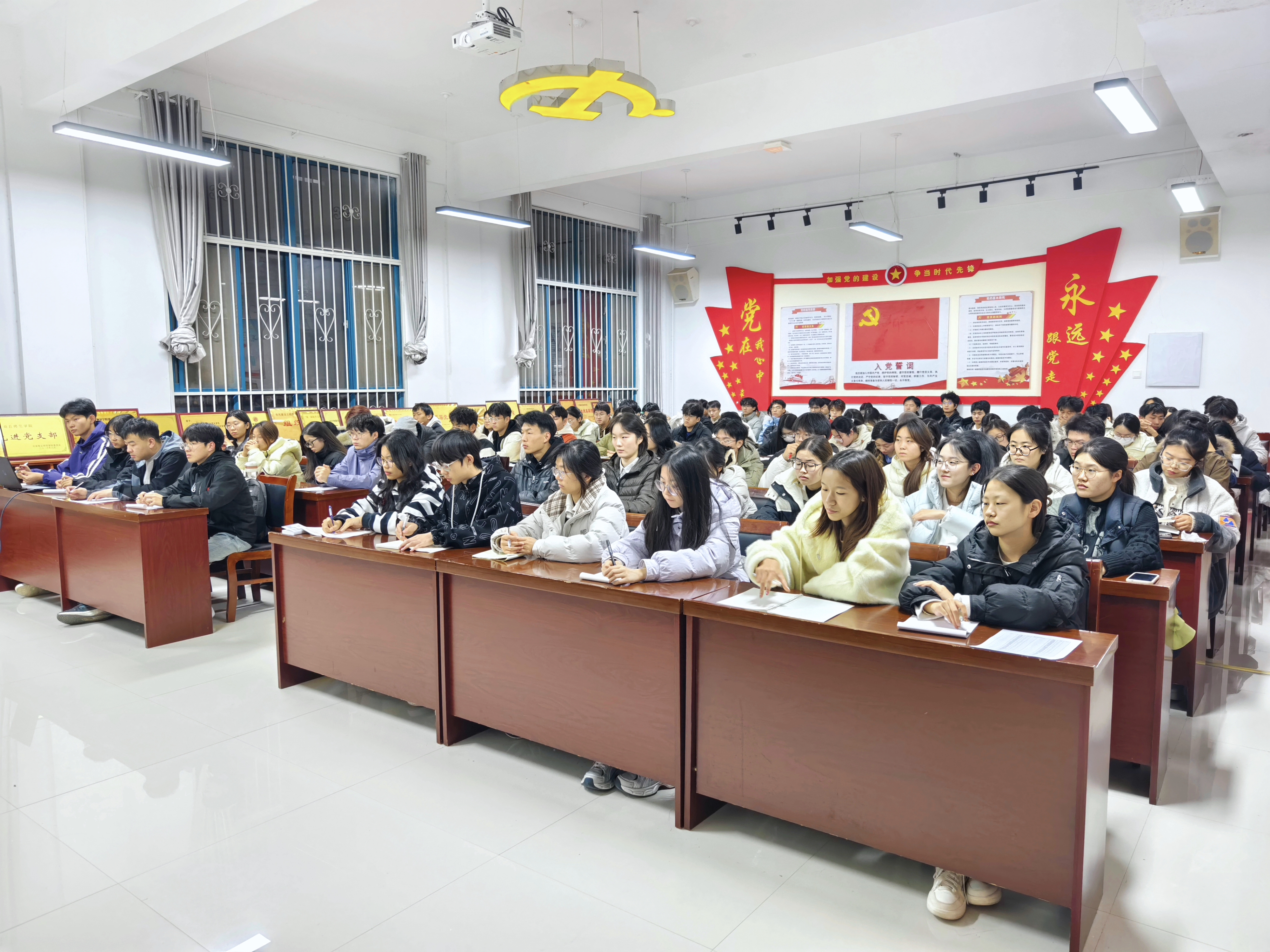 培训中,彭会锋围绕“心、志、德、才”四个核心维度展开系统讲授。他强调,青年学子要志存高远、脚踏实地,既要树立与时代同向的远大理想,又要扎根日常学习实践;既要不畏成长路上的艰难险阻,勇担新时代赋予的使命责任,更要主动将个人理想追求融入党和国家事业发展的大局中,实现个人价值与社会价值的统一。
