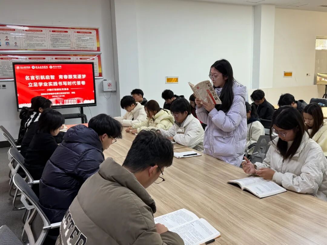 软件学院学生第三党支部11月19日在三商楼114会议室组织开展了“名言启智·青春向党”读书交流主题党日活动。活动由党支部书记李阳主持。