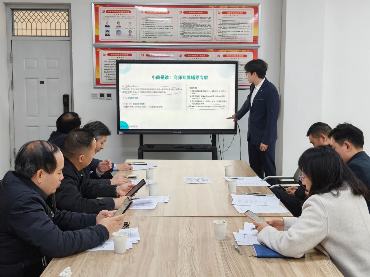 赛前,学院组建了由校内外专家组成的评委团,并召开专项工作会议,细化赛程安排、明确评分标准,为赛事有序开展筑牢基础。随着比赛正式启动,各参赛团队围绕“AI赋能数智商师”这一核心主题,分别从功能架构、创新亮点、技术实现和应用场景四个维度进行了系统展示。参赛项目涵盖“小南”AI学习助手、3D智能题库系统、“青囊”中医健康管家、智能简历生成工具、“辅导员帮帮团”思政答疑平台以及“知食分子”营养规划系统等多个创新方向,涉及智慧教育、健康管理、职业发展、校园服务等多元场景。选手们通过清晰的逻辑阐述、生动的功能演示与扎实的答辩环节,全面展现了运用AI技术解决实际问题的综合能力,体现了从需求洞察到产品落地的完整创新思维。评委们围绕项目的技术选型、算法创新、数据治理、应用落地及商业模式等维度进行了深入提问,并给出了富有建设性的改进建议。